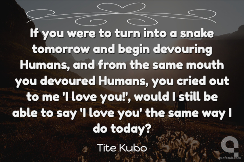 If you were to turn into a snake tomorrow and begin devouring Humans, and from the same mouth you devoured Humans, you cried out to me 'I love you!', would I still be able to say 'I love you' the same way I do today?