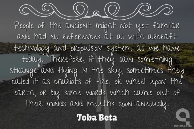 People of the ancient might not yet familiar and had no references at all with aircraft technology and propulsion system as we have today. Therefore, if they saw something strange and flying in the sky, sometimes they called it as chariots of fire, or wheel upon the earth, or by some words which came out of their minds and mouths spontaneously.