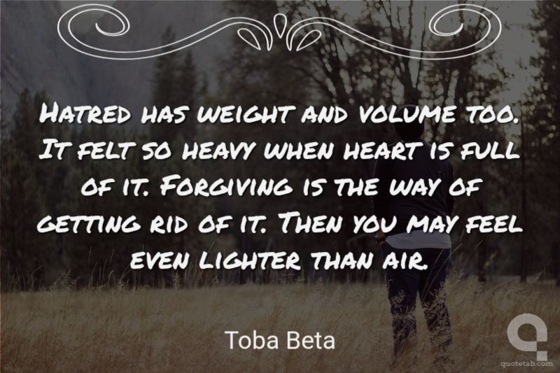 Hatred has weight and volume too. It felt so heavy when heart is full of it. Forgiving is the way of getting rid of it. Then you may feel even lighter than air.