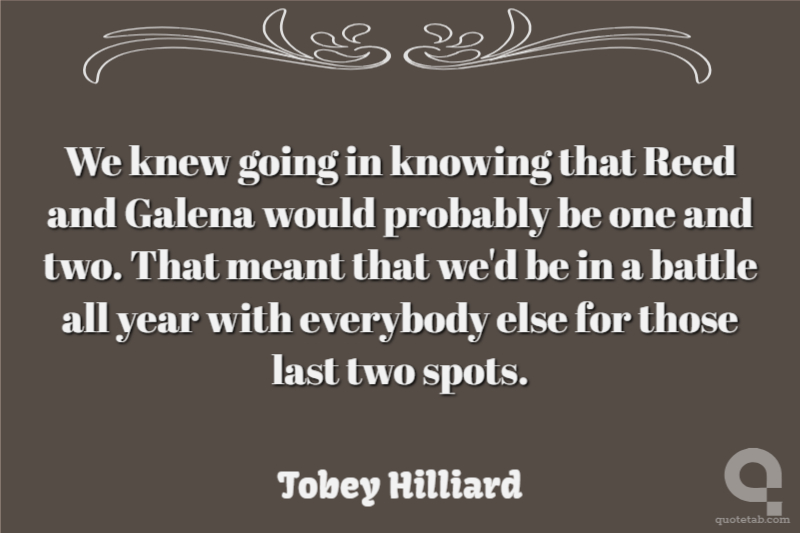 We knew going in knowing that Reed and Galena would probably be one and two. That meant that we'd be in a battle all year with everybody else for those last two spots.