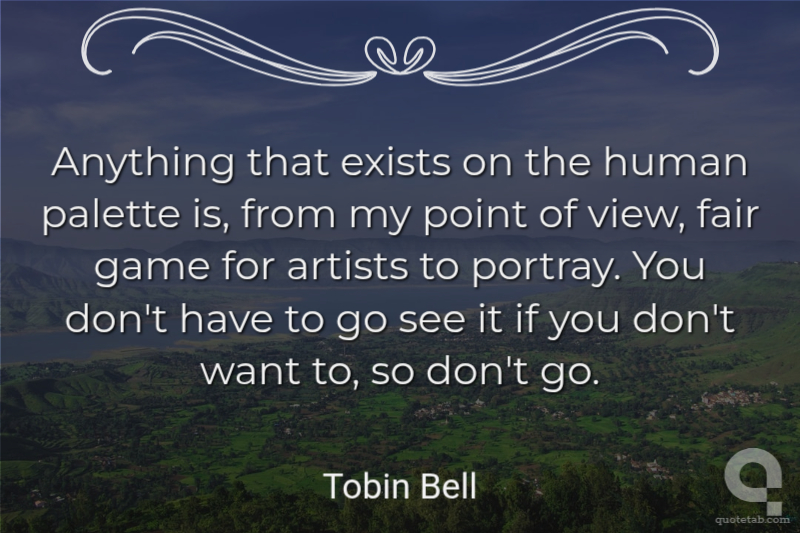 Anything that exists on the human palette is, from my point of view, fair game for artists to portray. You don't have to go see it if you don't want to, so don't go.