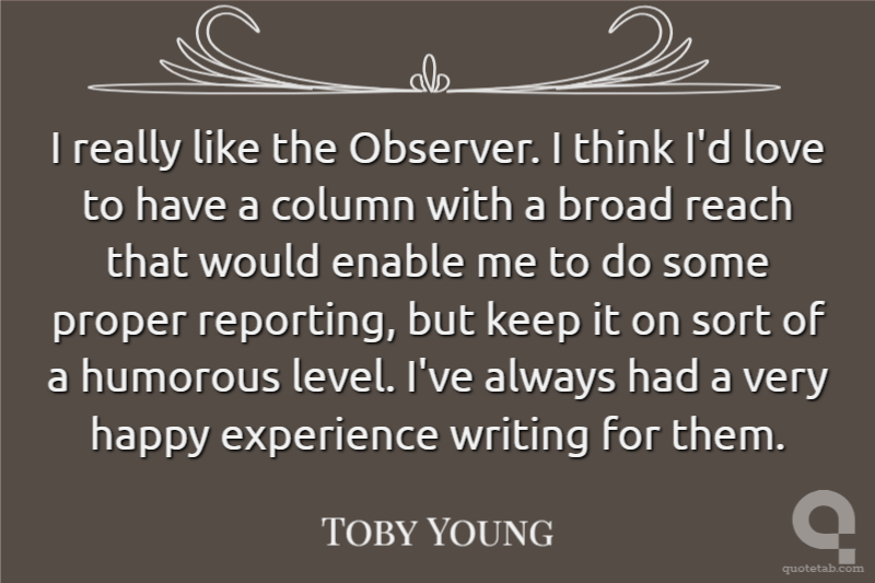 I really like the Observer. I think I'd love to have a column with a broad reach that would enable me to do some proper reporting, but keep it on sort of a humorous level. I've always had a very happy experience writing for them.
