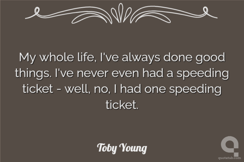 My whole life, I've always done good things. I've never even had a speeding ticket - well, no, I had one speeding ticket.