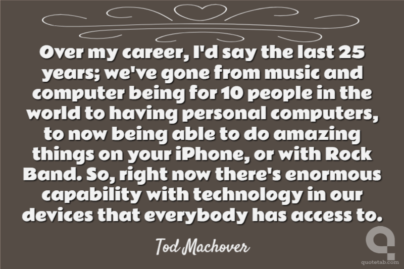 Over my career, I'd say the last 25 years; we've gone from music and computer being for 10 people in the world to having personal computers, to now being able to do amazing things on your iPhone, or with Rock Band. So, right now there's enormous capability with technology in our devices that everybody has access to.