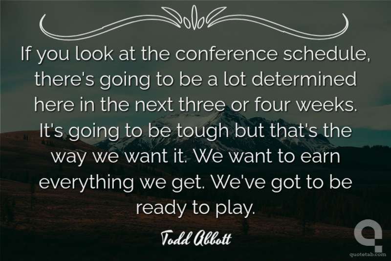 If you look at the conference schedule, there's going to be a lot determined here in the next three or four weeks. It's going to be tough but that's the way we want it. We want to earn everything we get. We've got to be ready to play.