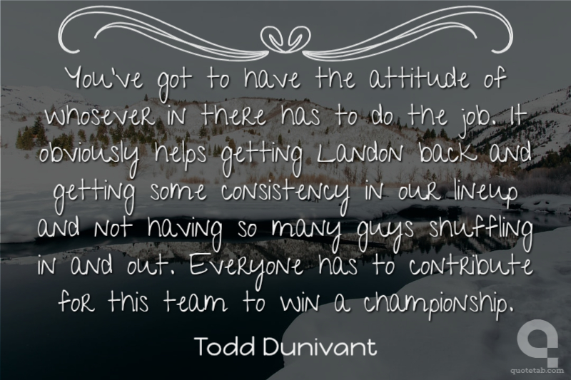 You've got to have the attitude of whosever in there has to do the job. It obviously helps getting Landon back and getting some consistency in our lineup and not having so many guys shuffling in and out. Everyone has to contribute for this team to win a championship.