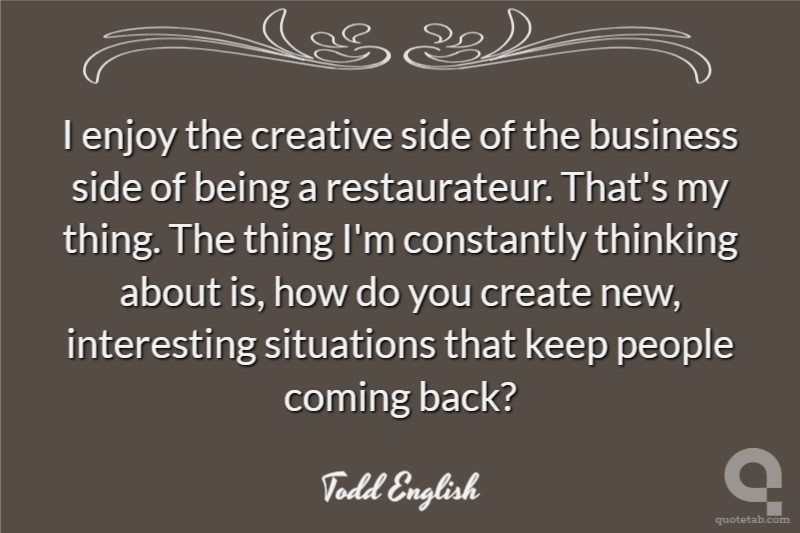 I enjoy the creative side of the business side of being a restaurateur. That's my thing. The thing I'm constantly thinking about is, how do you create new, interesting situations that keep people coming back?
