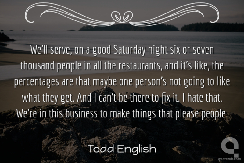 We'll serve, on a good Saturday night six or seven thousand people in all the restaurants, and it's like, the percentages are that maybe one person's not going to like what they get. And I can't be there to fix it. I hate that. We're in this business to make things that please people.
