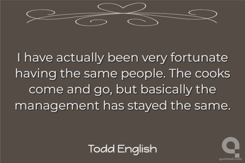 I have actually been very fortunate having the same people. The cooks come and go, but basically the management has stayed the same.