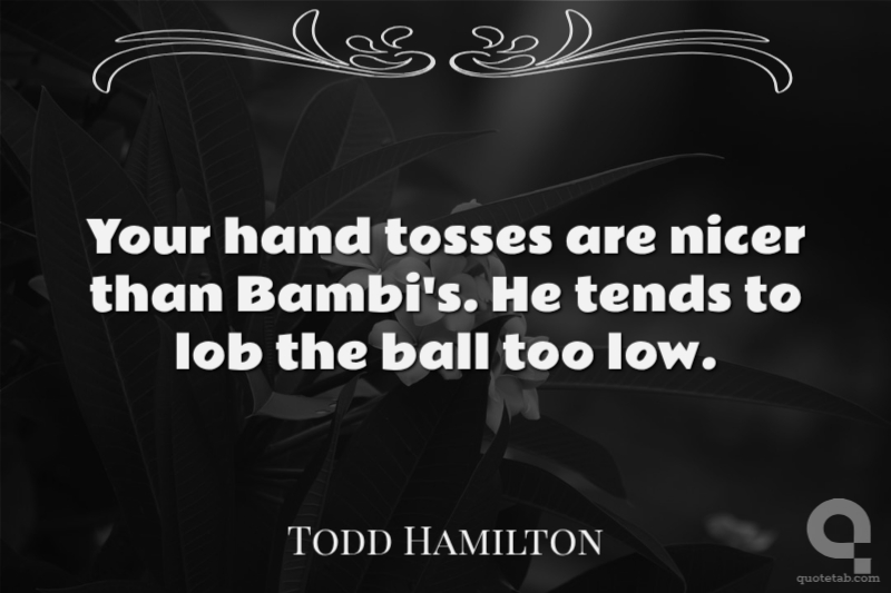 Your hand tosses are nicer than Bambi's. He tends to lob the ball too low.