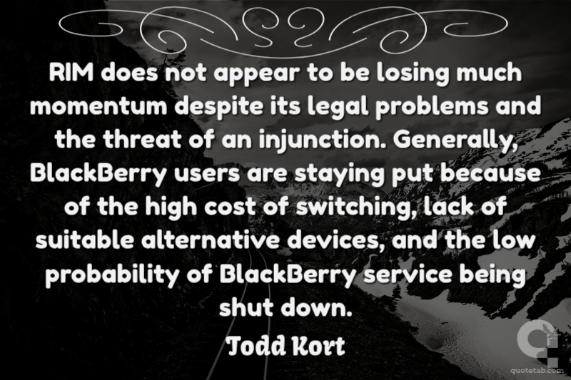 RIM does not appear to be losing much momentum despite its legal problems and the threat of an injunction. Generally, BlackBerry users are staying put because of the high cost of switching, lack of suitable alternative devices, and the low probability of BlackBerry service being shut down.