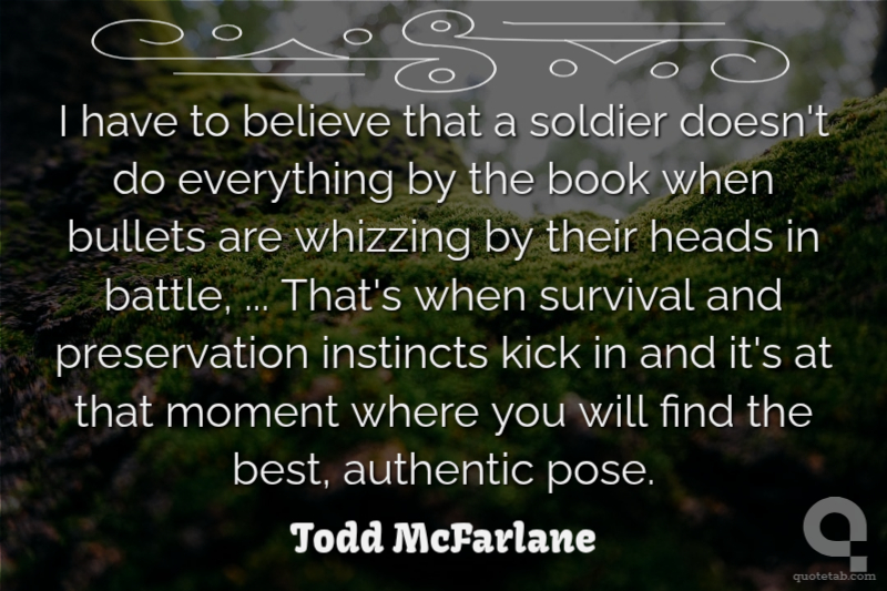 I have to believe that a soldier doesn't do everything by the book when bullets are whizzing by their heads in battle, ... That's when survival and preservation instincts kick in and it's at that moment where you will find the best, authentic pose.