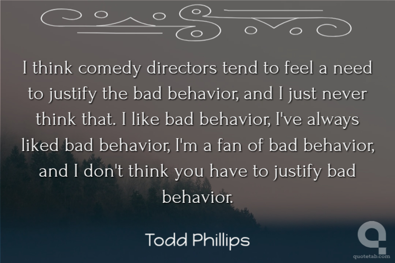 I think comedy directors tend to feel a need to justify the bad behavior, and I just never think that. I like bad behavior, I've always liked bad behavior, I'm a fan of bad behavior, and I don't think you have to justify bad behavior.