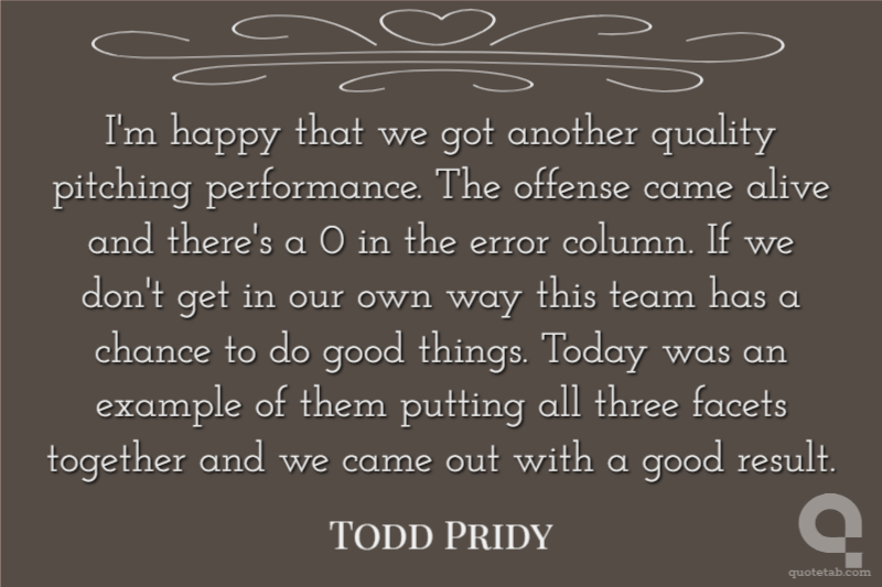 I'm happy that we got another quality pitching performance. The offense came alive and there's a 0 in the error column. If we don't get in our own way this team has a chance to do good things. Today was an example of them putting all three facets together and we came out with a good result.