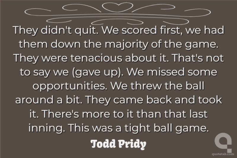 They didn't quit. We scored first, we had them down the majority of the game. They were tenacious about it. That's not to say we (gave up). We missed some opportunities. We threw the ball around a bit. They came back and took it. There's more to it than that last inning. This was a tight ball game.