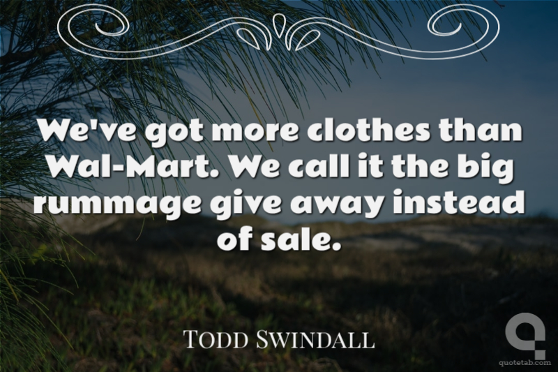 We've got more clothes than Wal-Mart. We call it the big rummage give away instead of sale.