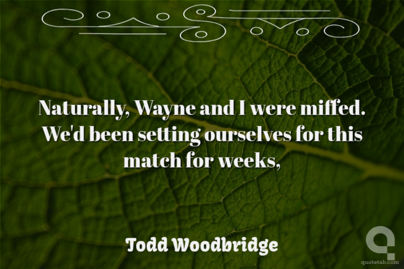 Naturally, Wayne and I were miffed. We'd been setting ourselves for this match for weeks,