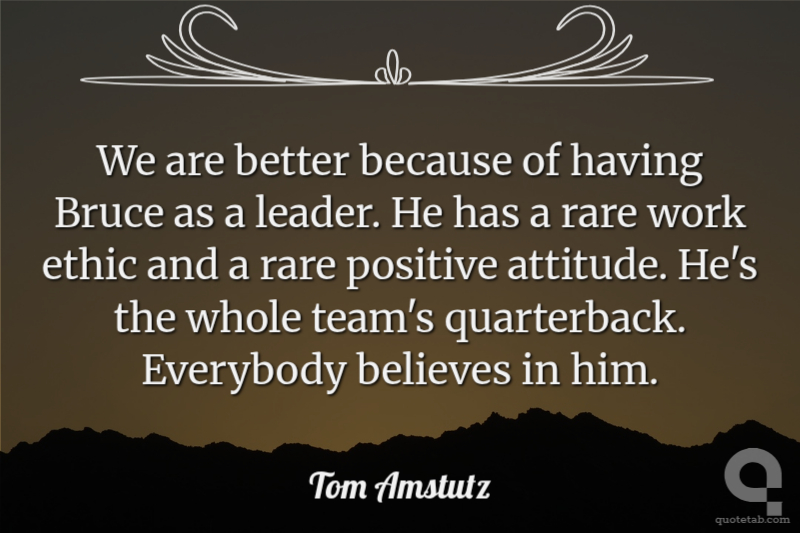 We are better because of having Bruce as a leader. He has a rare work ethic and a rare positive attitude. He's the whole team's quarterback. Everybody believes in him.
