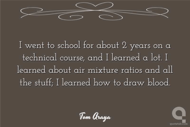 I went to school for about 2 years on a technical course, and I learned a lot. I learned about air mixture ratios and all the stuff; I learned how to draw blood.
