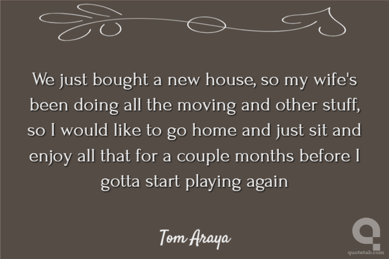 We just bought a new house, so my wife's been doing all the moving and other stuff, so I would like to go home and just sit and enjoy all that for a couple months before I gotta start playing again