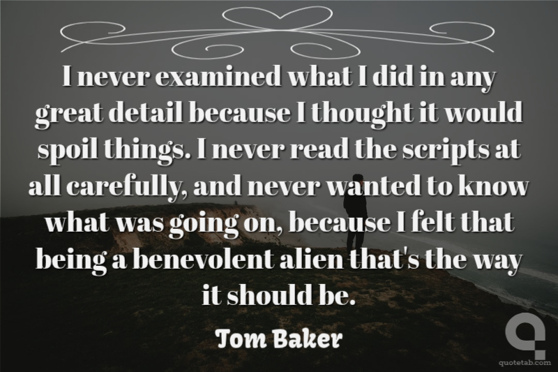 I never examined what I did in any great detail because I thought it would spoil things. I never read the scripts at all carefully, and never wanted to know what was going on, because I felt that being a benevolent alien that's the way it should be.