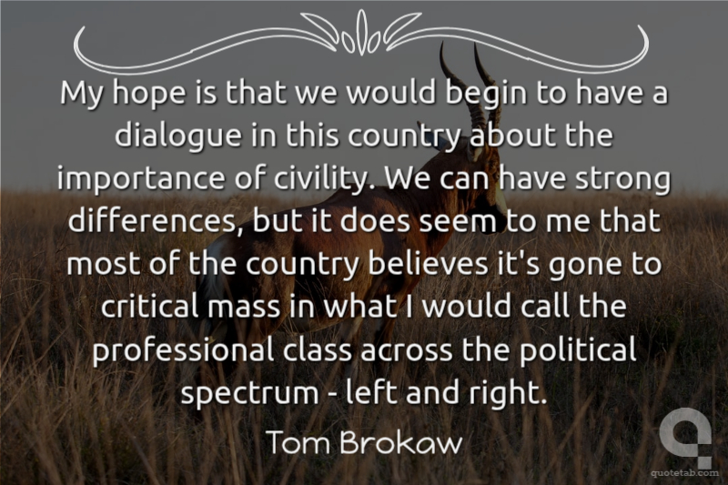 My hope is that we would begin to have a dialogue in this country about the importance of civility. We can have strong differences, but it does seem to me that most of the country believes it's gone to critical mass in what I would call the professional class across the political spectrum - left and right.