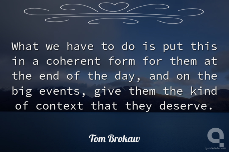 What we have to do is put this in a coherent form for them at the end of the day, and on the big events, give them the kind of context that they deserve.