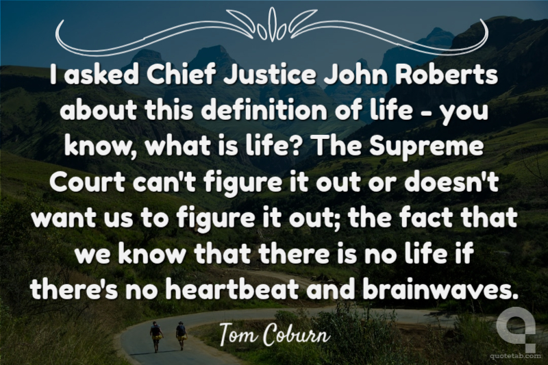 I asked Chief Justice John Roberts about this definition of life - you know, what is life? The Supreme Court can't figure it out or doesn't want us to figure it out; the fact that we know that there is no life if there's no heartbeat and brainwaves.