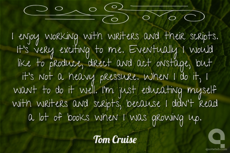 I enjoy working with writers and their scripts. It's very exciting to me. Eventually I would like to produce, direct and act onstage, but it's not a heavy pressure. When I do it, I want to do it well. I'm just educating myself with writers and scripts, because I didn't read a lot of books when I was growing up.