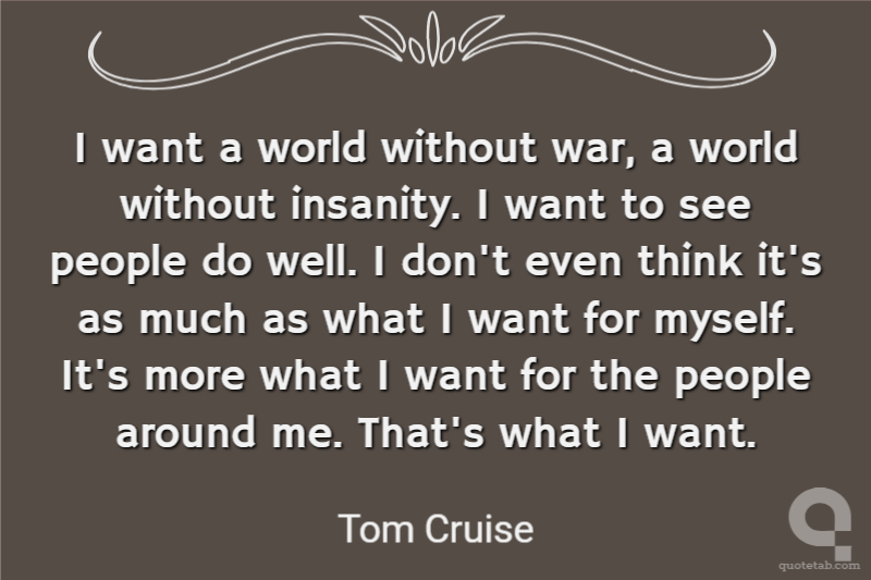 I want a world without war, a world without insanity. I want to see people do well. I don't even think it's as much as what I want for myself. It's more what I want for the people around me. That's what I want.