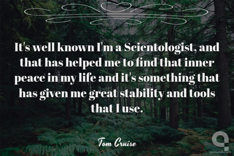 It's well known I'm a Scientologist, and that has helped me to find that inner peace in my life and it's something that has given me great stability and tools that I use.
