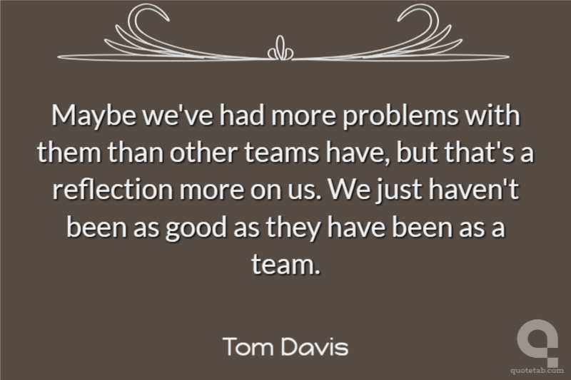 Maybe we've had more problems with them than other teams have, but that's a reflection more on us. We just haven't been as good as they have been as a team.