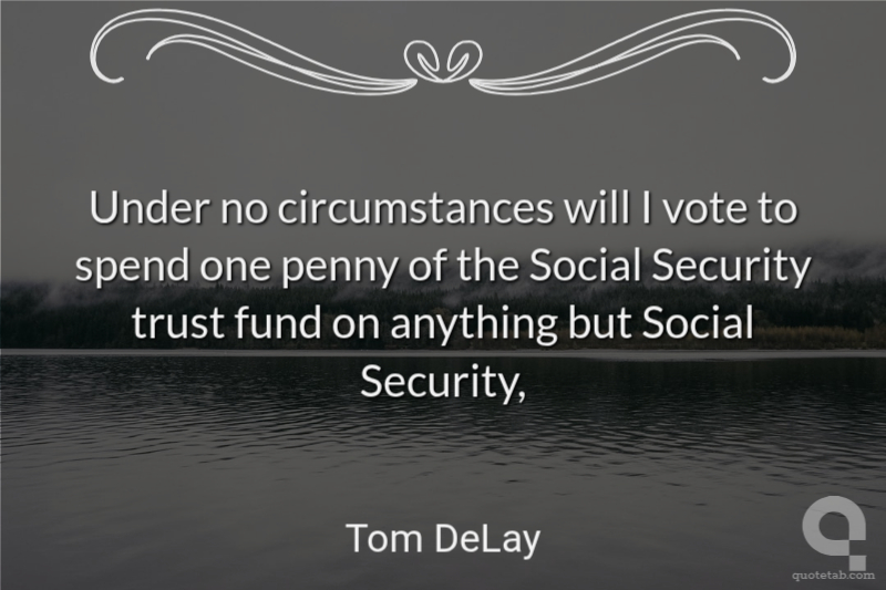 Under no circumstances will I vote to spend one penny of the Social Security trust fund on anything but Social Security,