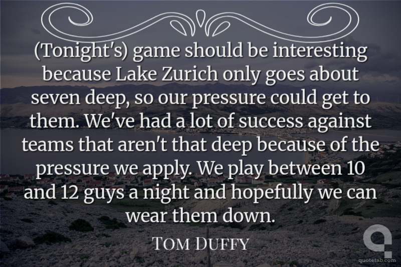 (Tonight's) game should be interesting because Lake Zurich only goes about seven deep, so our pressure could get to them. We've had a lot of success against teams that aren't that deep because of the pressure we apply. We play between 10 and 12 guys a night and hopefully we can wear them down.