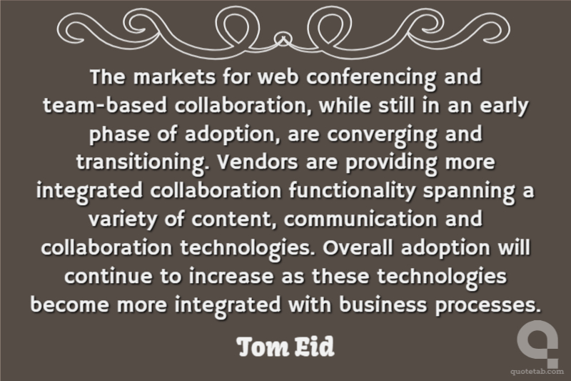 The markets for web conferencing and team-based collaboration, while still in an early phase of adoption, are converging and transitioning. Vendors are providing more integrated collaboration functionality spanning a variety of content, communication and collaboration technologies. Overall adoption will continue to increase as these technologies become more integrated with business processes.