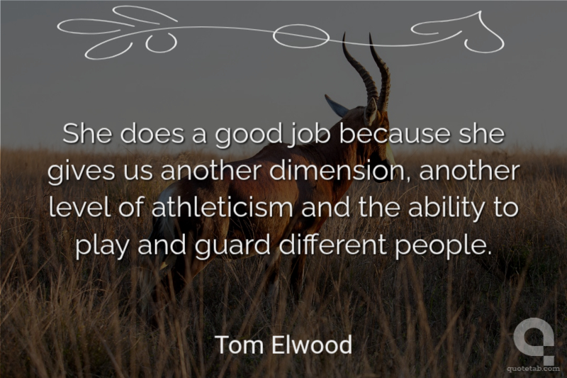 She does a good job because she gives us another dimension, another level of athleticism and the ability to play and guard different people.
