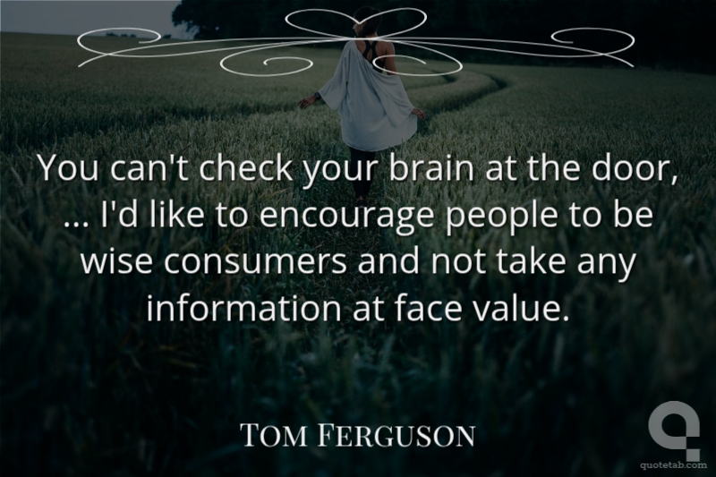 You can't check your brain at the door, ... I'd like to encourage people to be wise consumers and not take any information at face value.