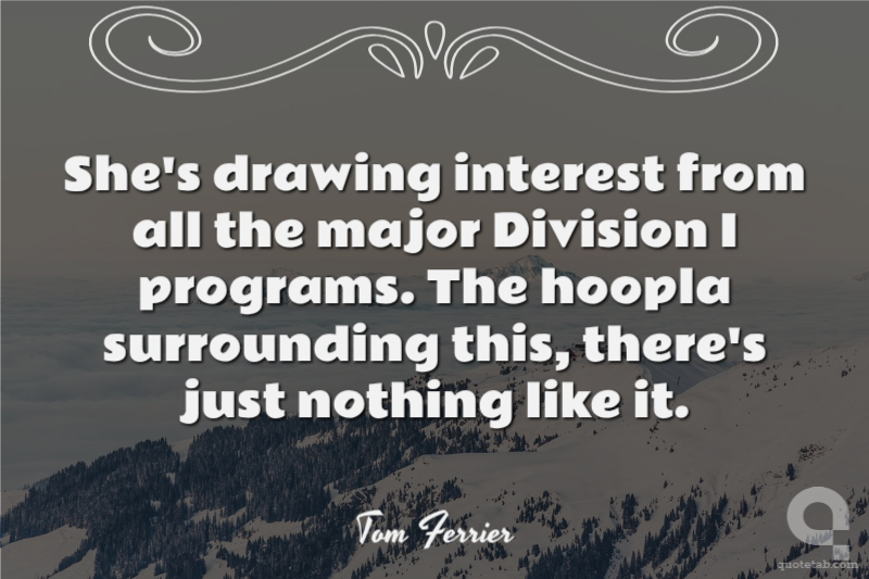 She's drawing interest from all the major Division I programs. The hoopla surrounding this, there's just nothing like it.