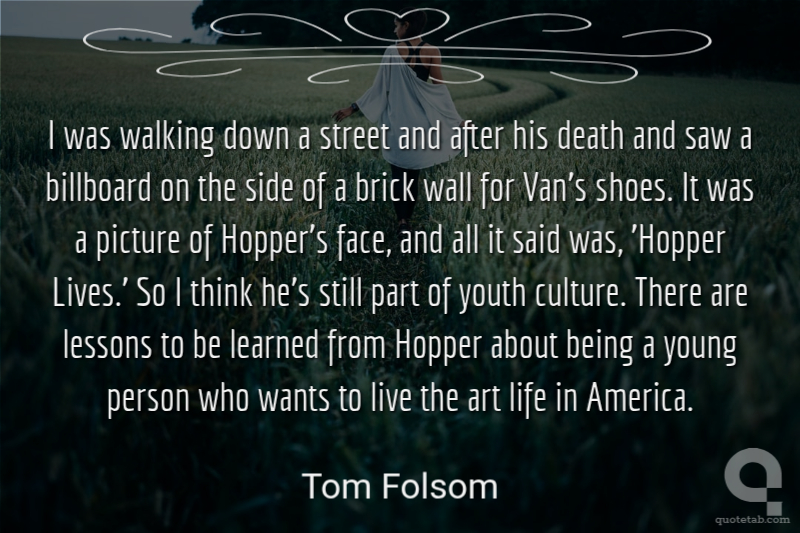 I was walking down a street and after his death and saw a billboard on the side of a brick wall for Van's shoes. It was a picture of Hopper's face, and all it said was, 'Hopper Lives.' So I think he's still part of youth culture. There are lessons to be learned from Hopper about being a young person who wants to live the art life in America.