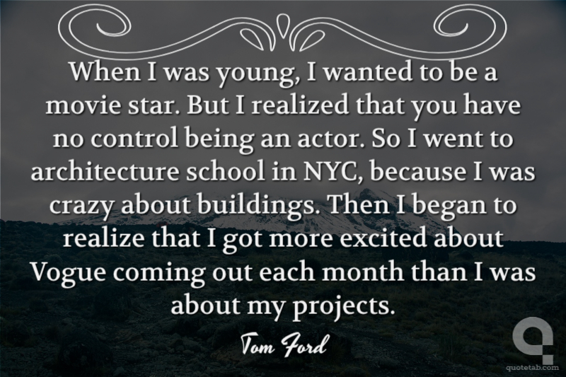 When I was young, I wanted to be a movie star. But I realized that you have no control being an actor. So I went to architecture school in NYC, because I was crazy about buildings. Then I began to realize that I got more excited about Vogue coming out each month than I was about my projects.
