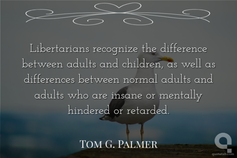 Libertarians recognize the difference between adults and children, as well as differences between normal adults and adults who are insane or mentally hindered or retarded.