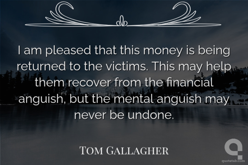 I am pleased that this money is being returned to the victims. This may help them recover from the financial anguish, but the mental anguish may never be undone.