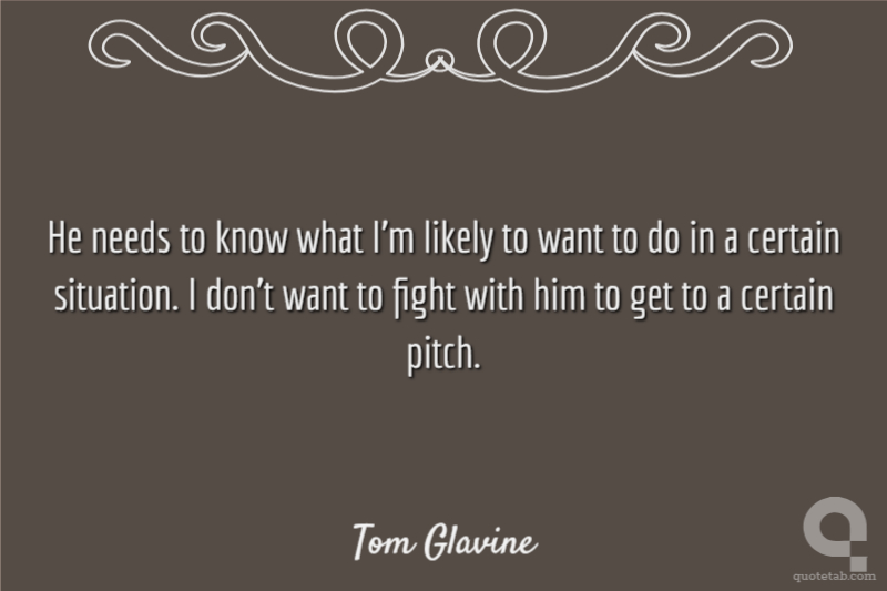 He needs to know what I'm likely to want to do in a certain situation. I don't want to fight with him to get to a certain pitch.
