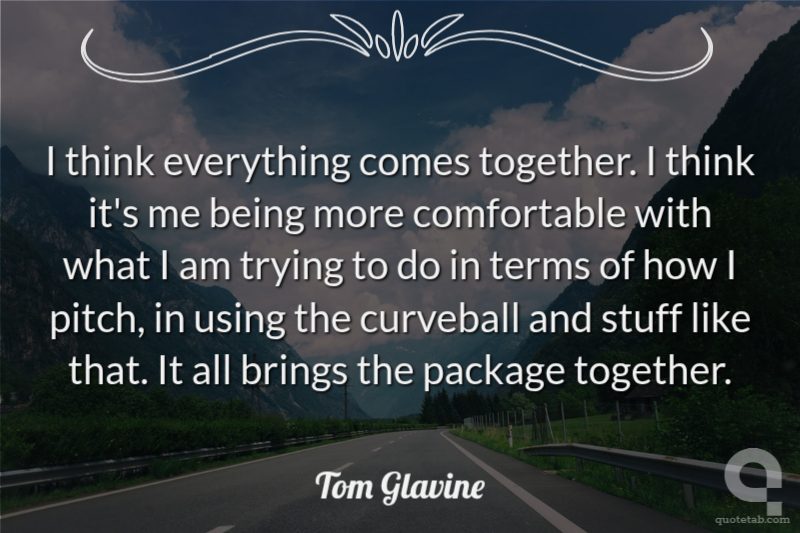 I think everything comes together. I think it's me being more comfortable with what I am trying to do in terms of how I pitch, in using the curveball and stuff like that. It all brings the package together.