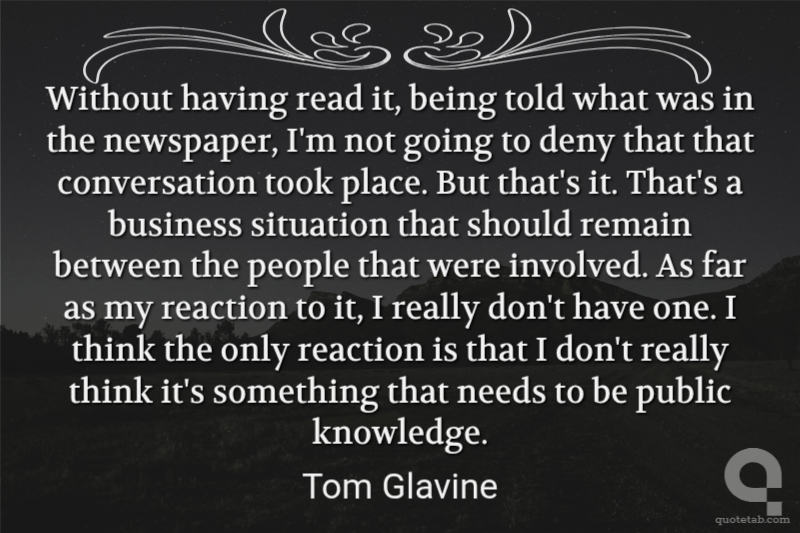 Without having read it, being told what was in the newspaper, I'm not going to deny that that conversation took place. But that's it. That's a business situation that should remain between the people that were involved. As far as my reaction to it, I really don't have one. I think the only reaction is that I don't really think it's something that needs to be public knowledge.