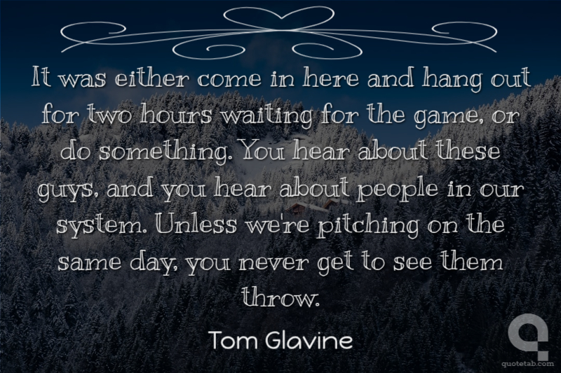 It was either come in here and hang out for two hours waiting for the game, or do something. You hear about these guys, and you hear about people in our system. Unless we're pitching on the same day, you never get to see them throw.