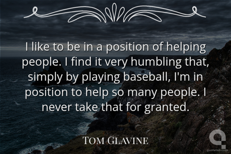 I like to be in a position of helping people. I find it very humbling that, simply by playing baseball, I'm in position to help so many people. I never take that for granted.