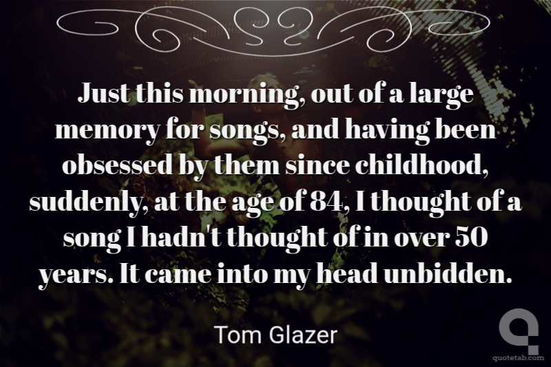 Just this morning, out of a large memory for songs, and having been obsessed by them since childhood, suddenly, at the age of 84, I thought of a song I hadn't thought of in over 50 years. It came into my head unbidden.