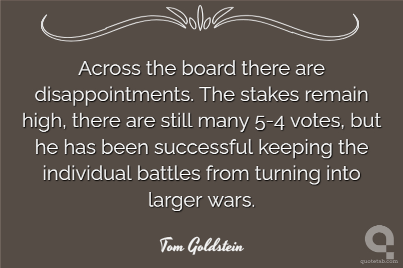 Across the board there are disappointments. The stakes remain high, there are still many 5-4 votes, but he has been successful keeping the individual battles from turning into larger wars.