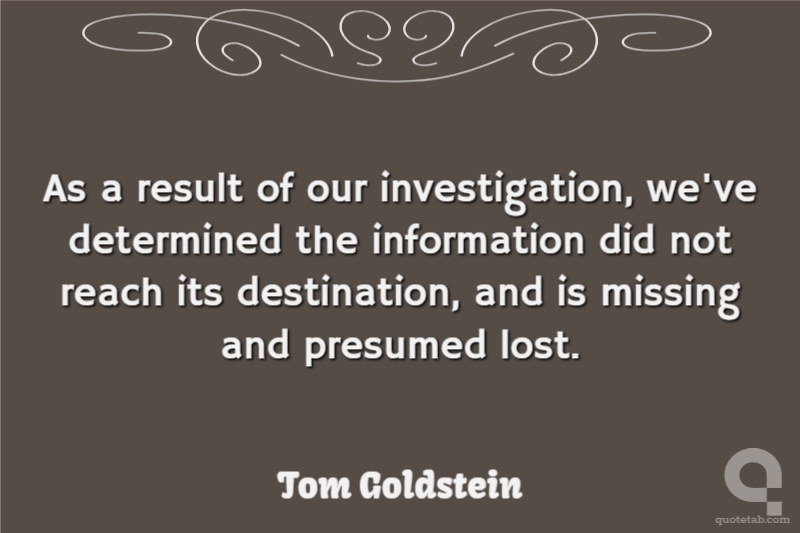 As a result of our investigation, we've determined the information did not reach its destination, and is missing and presumed lost.